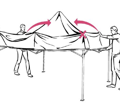 One person is sufficient to assemble pop up gazebos up to a size of 3x3 m, but for larger pop up gazebos we recommend the presence of two people. You can assemble pop up gazebos of all sizes on your own, but you should bear in mind that large pop up gazebos might take a little longer to erect.