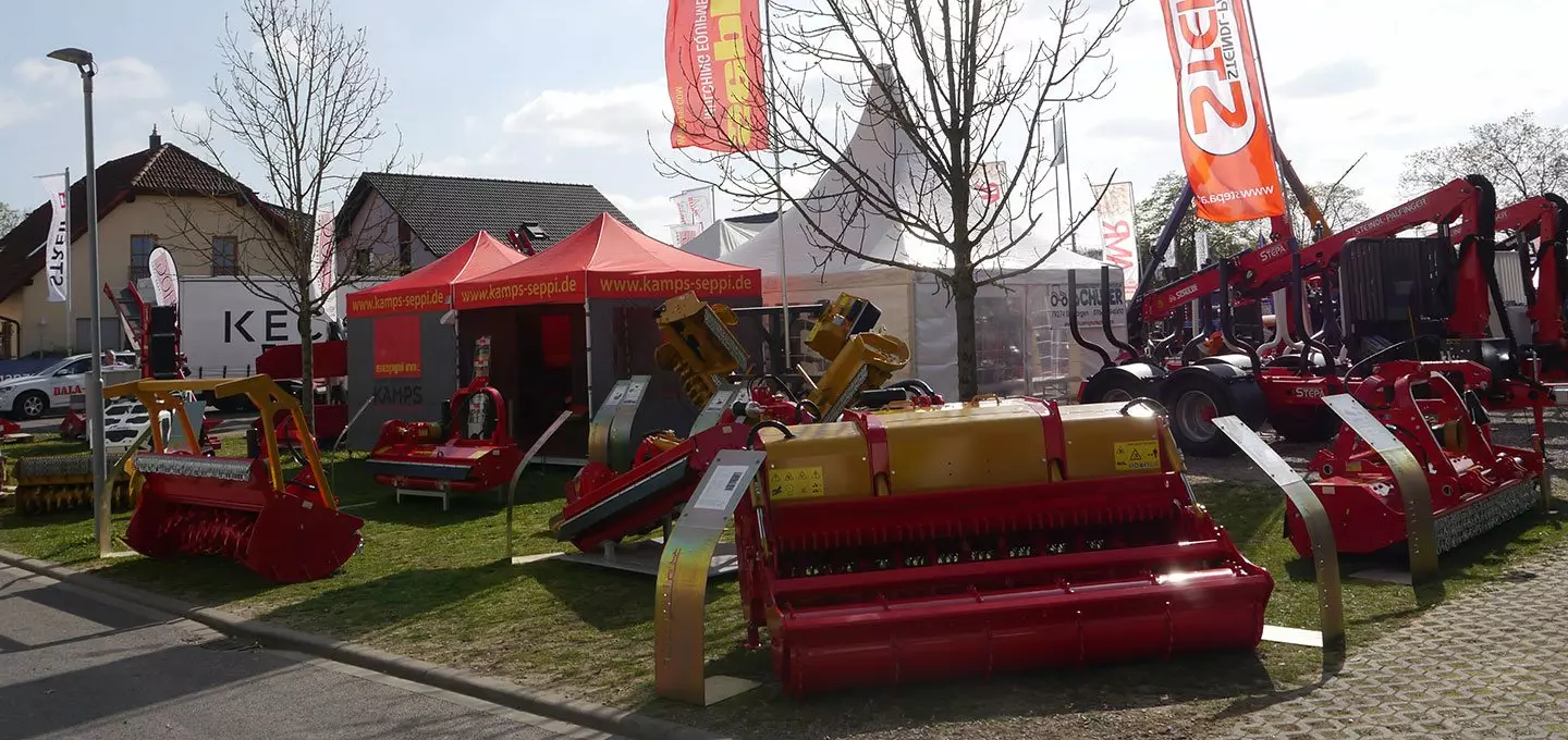 For the company KAMPS seppi m. Deutschland – the specialist for mulching machines – we have developed a highly individual solution for trade fairs. Two 3x3m pop up gazebos of series E1 with company branding reflect the brand and blend in with the overall presentation.